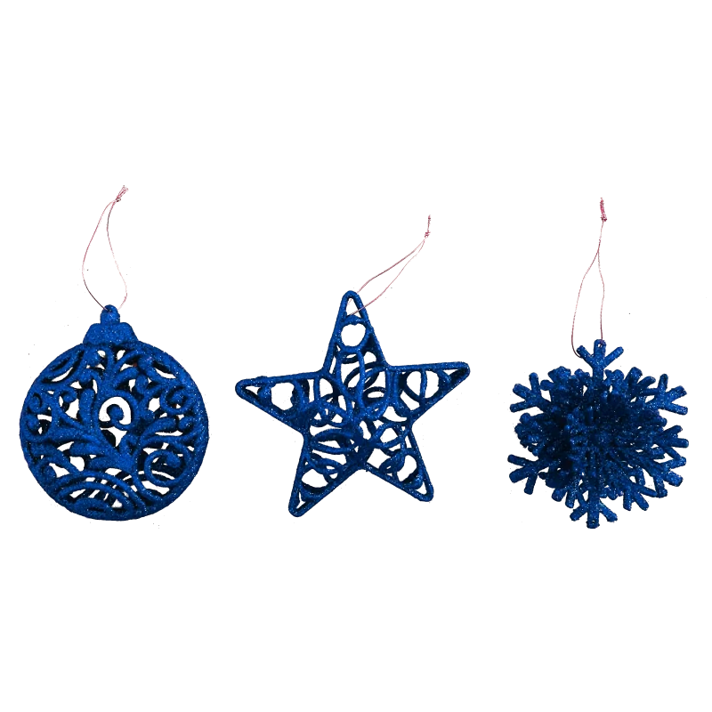 DÉCORATION PAILLETTES BLEUES 3D 10-12CM, MOD. CUL.