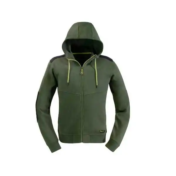 Sweat-shirt de travail lisse avec capuche réglable avec cordon de serrage et renforts rembourrés dans les zones les plus sollicitées comme les épaules et les manches. Le sweat-shirt à capuche est fabriqué dans un tissu chaud et confortable et est équipé de poches confortables à la taille et d'une bande élastique aux poignets et à la taille.
