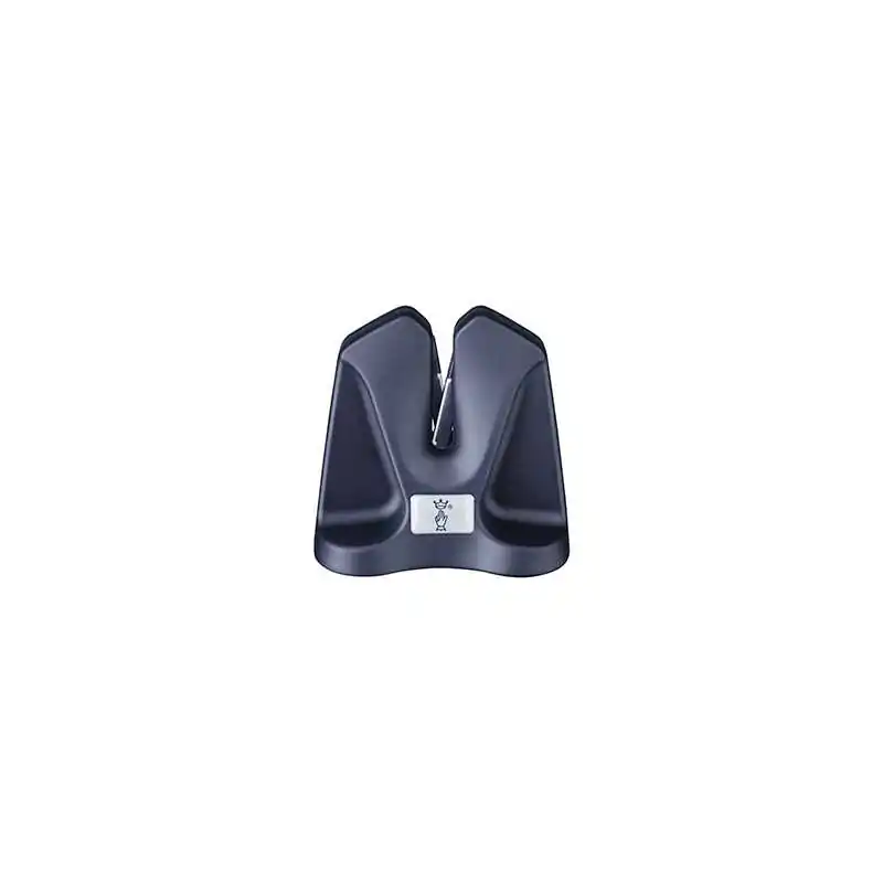 Piccolo affilatore manuale per coltelli da cucina o da tasca. placchette da taglio in carburo di tungsteno e angolo autoregolabile. i cuscinetti in silicone consentono di mantenerlo in posizione per un'affilatura sicura. confezione in scatola blister.