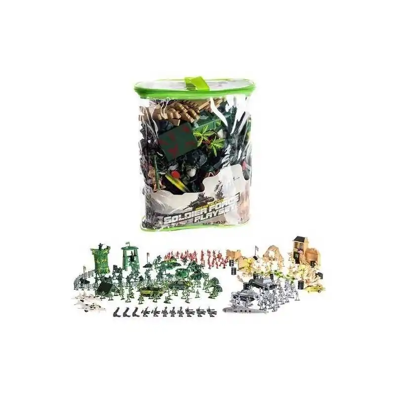 questo fantastico set è composto da un numero molto elevato di elementi. il set comprende: soldati, armi, carri armati, aereo, cannoni, edifici, intrecci di fili, alberi e tanti altri accessori che ti permetteranno di creare uno scenario di guerra unico. il giocattolo sarà perfetto sia a casa durante i giorni di pioggia che all'aperto, ad esempio in un parco o in un parco giochi. il set è contenuto in una custodia con cerniera e maniglia, che ne consentirà un facile stoccaggio e trasporto.