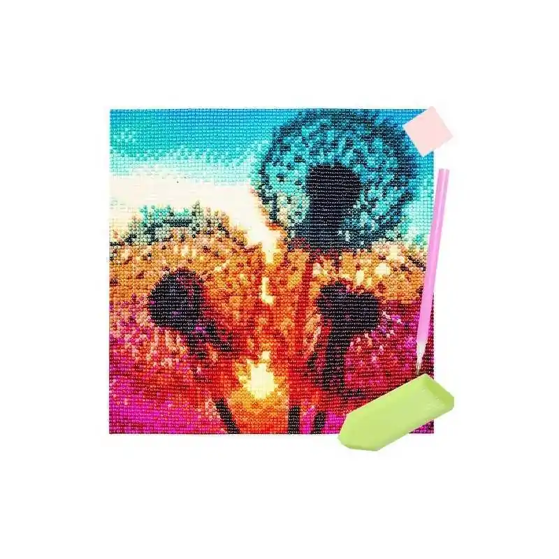 specifiche - modello: denti di leone; tela ricoperta da uno strato adesivo: sì; nel set: rombi colorati, applicatore, colla a secco, contenitore; dimensione: 30x30 cm; dimensione dell'immagine: 25x25 cm; peso: 0,1 kg; peso nella confezione: 0,103 kg