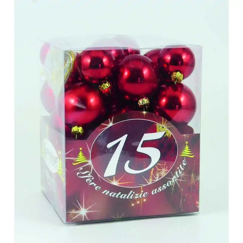 15 SFERE PLASTICA DIAM. ASS. ROSSE IN SCAT. ACETATO (6X40MM., 5X50MM., 4X60MM.)